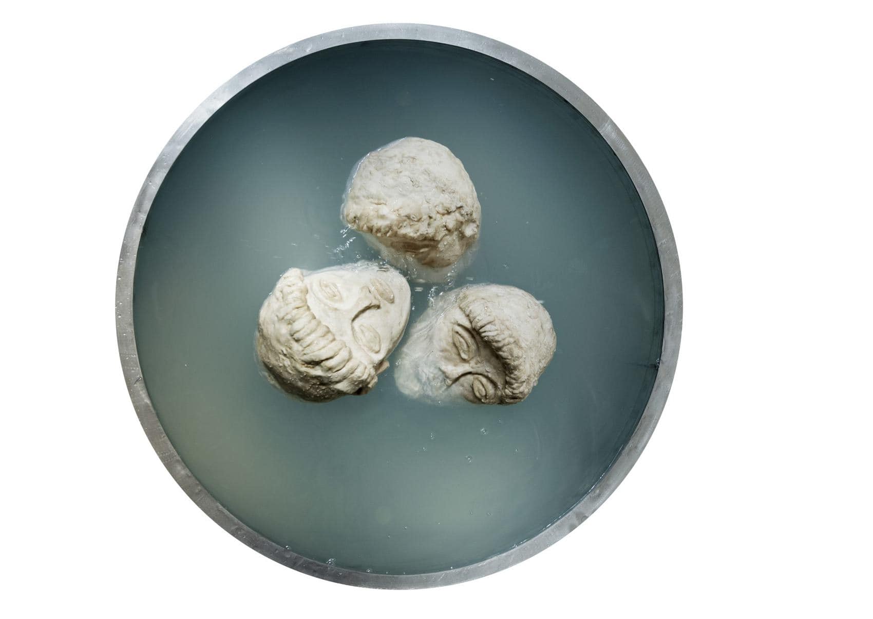 Die Installation Holy, Holy, Holy (2021) zeigt drei Köpfe, die in einem runden Wasserbecken schwimmen. Die fortwährende Bewegung des Wassers und die unvermeidliche Kollision der Köpfe bedeutet die langsame Abschürfung der markanten Gesichtszüge. Als Apparat des Fegefeuers, wird die Flüssigkeit stetig im Kreis gepumpt und die Subjekte bewegen sich in einem konstanten Zustand der Reinszenierung des Selbst.