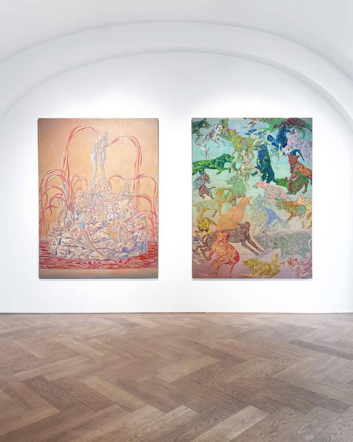 Bernhards Malerei ist kein Kommentar, sie ist Widerstand – gegen das Vergessen, gegen die Bequemlichkeit, gegen das Leisewerden der Wut. Die Werke erzählen von Systemen, die sich gegenseitig fressen, und von Körpern, die sich weigern, Teil davon zu sein. Negra Bernhard malt gegen den Weltzustand an – roh, wild, zärtlich-wütend. Ihre Bilder sind Manifest und Tarnkappen-Gewächs zugleich: verwunschen, verstörend, gefährlich im besten Sinne.