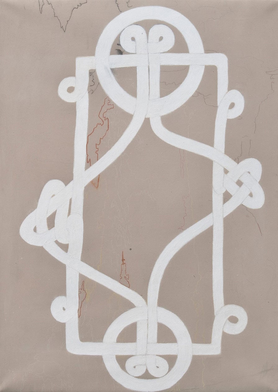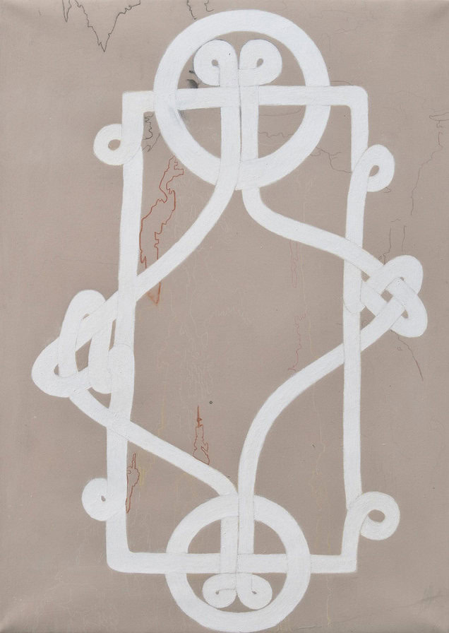 Aus etwas Distanz sieht es so aus, als hätte Frenzi Rigling (*1958, Schweiz) Botschaften an den Wänden hinterlassen. Kommt man näher, zerfällt der Text jedoch in unlesbare Chiffren. Die bunten Fragmente sind keine Buchstaben, sondern deren Zwischenräume.