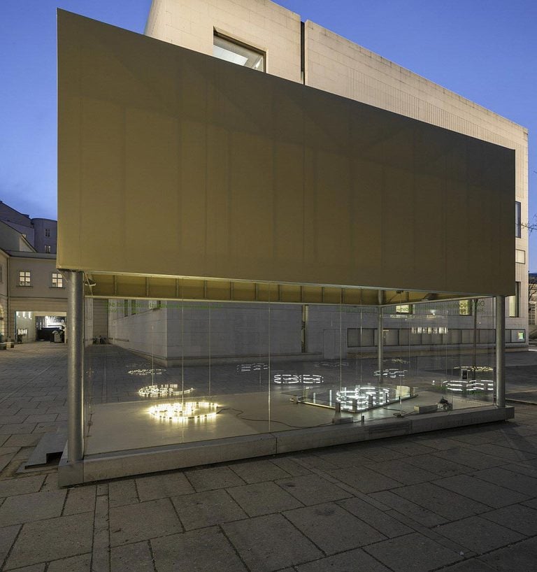 Für die ArtBox im Museumquartier hat Brigitte Kowanz eine ortsspezifische Installation entwickelt. „Die Wiederkehr des endlos veränderten Selben“ – realer und virtueller Raum gehen ineinander über. Durch die Transparenz der Glasscheiben und die Wirkung des Licht-Spiegelbodens wird auch die sich ständig verändernde Umgebung des Museumsquartiers zum integrativen Bestandteil der Installation. Das aus dem Außenraum kommende natürliche und künstliche Licht verändert im Laufe des Tages bzw. der Nacht die Installation, während diese gleichzeitig Einfluss auf die Umgebung nimmt. Durch diese Wechselwirkung werden auch die Grenzen zwischen „Innen“ und „Außen“ virtuell aufgelöst. Licht wird hier zum raumbildenden und transitiven Potential, es zeigt sich zugleich flüchtig und expansiv, sodass die dem Medium Licht immanente Ambivalenz und Polarität erlebbar wird.