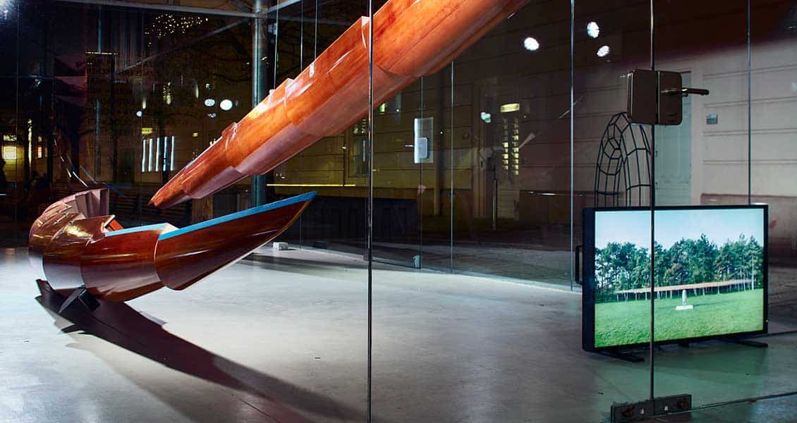 Für die ArtBox arrangiert Roman Pfeffer das ursprünglich 17,5m lange Sportruderboot der österreichischen Olympiamannschaft von 1972 zu zwei spiralförmigen Skulpturenteilen. Bevor Roman Pfeffer das Boot mit gezielten Sägeschnitten in 16 Teile segmentiert hat, verwendete er es für das Video Brain Twister (Autogyrocopter) als durchgängiges Rotorblatt, das er auf seinem Kopf kreisen läßt. Der Ring des Mazzocchio ist eine geometrisch konstruierte Kreisform aus 16 Elementen, die auf eine florentinische Kopfbedeckung der Renaissance zurückgeht. Der Mazzocchio wurde von dem Maler Paolo Ucello als Studienobjekt für Perspektive in der Malerei verwendet. Mit dem in der ArtBox gezeigten Mazzocchio nimmt Roman Pfeffer diese Form auf, um sie zu variieren, um- und neu anzuordnen, wie auch in der Wandskulptur Mazzocchio twisted XII. Das Werk Roman Pfeffers entzieht sich bewusst einer linearen Deutung. Es stellt vielschichtige Bezüge zur Mathematik, Naturwissenschaft und Kunstgeschichte her. Roman Pfeffer verändert Formen und führt diese ad absurdum , sodass bestehende Ordnungen und Sehgewohnheiten aufgehoben und in Frage gestellt werden.