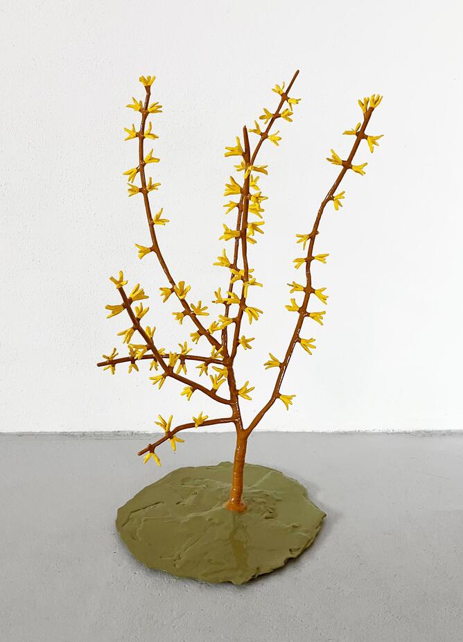 The central motif of Thomas Stimm’s work is the mostly stark-yellow coloured “flower” that he originally created in a smaller format from clay, later as an oversized object in bronze and aluminium. Depending on the environment, be it a meadow or a concrete city space, the artistically formed plant towers over either its ‘real’ fellow members of the same species or it sets a counterpoint to urban life.