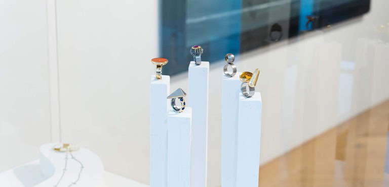 Anna Heindl’s jewellery artworks are contrasted with the work of three artists who are also conducting intensive research on a fundamental level on the universe. Her series Kosmos meets Geopsyche by Elisabeth von Samsonow, Gravity by Nives Widauer and Plejaden (Pleiades) by Frenzi Rigling. Jewellery art, painting and graphic design enter into an intensive dialogue regarding both content and aesthetics, thus surmounting postulated borders between the arts and media.