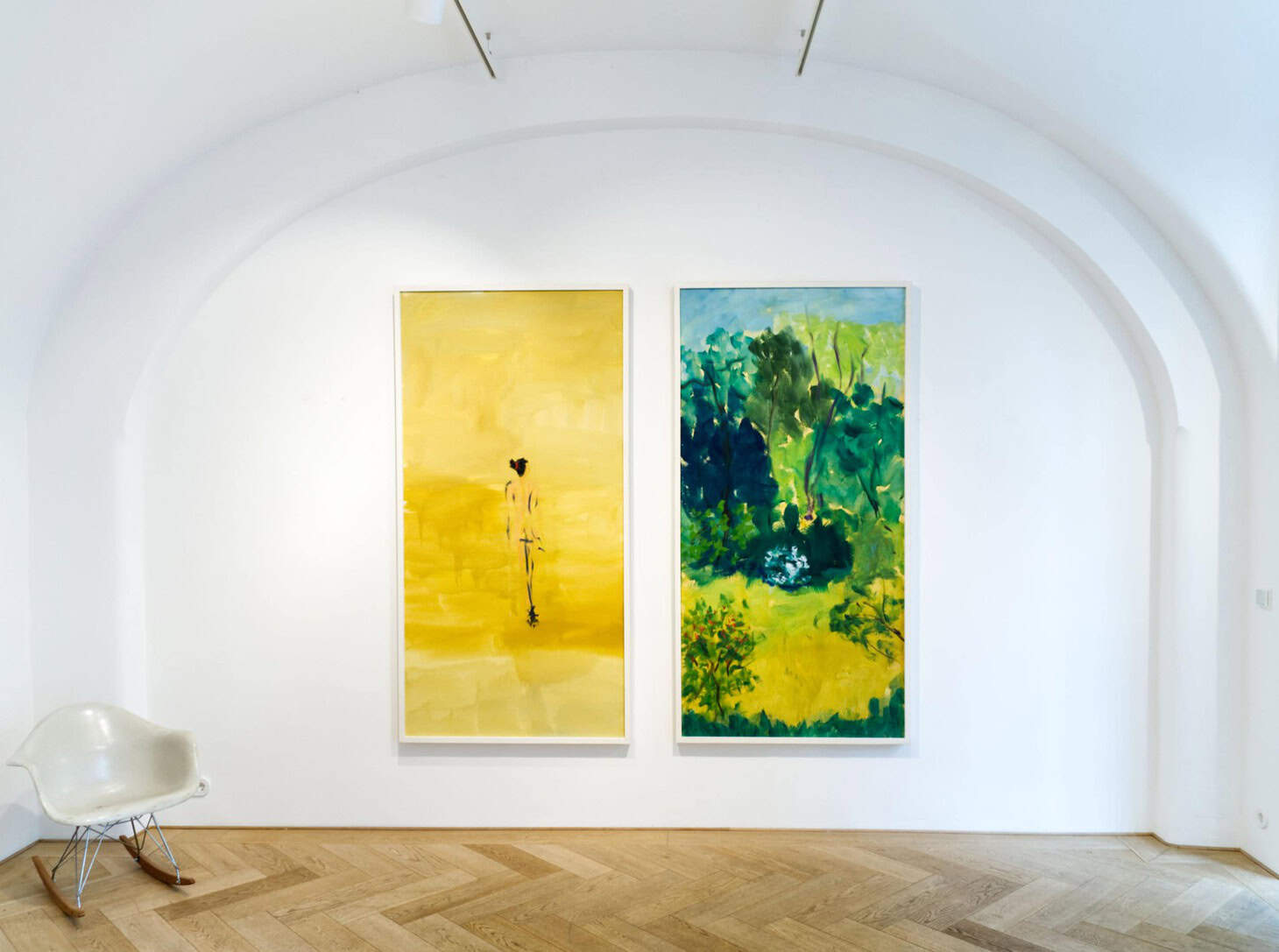 In Schmalix’s picture “Yellow” it is a yellow river that explores the boundaries between realism and abstraction under a yellow sky. In Stimm’s cast aluminium “Dahlia” it is a yellow blossom that immortalises the beauty of nature. Whether Uta Weber’s “Dot”, a dot that uses the iconography of the 1960s and has been transformed into the present, or Melichar’s picture “Ins Licht” (“Into the Light”), in which a female figure moves into the pictorial space of the painting ground, yellow is always the dominant color of the works of art.
